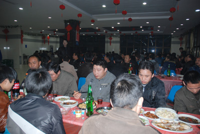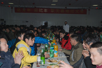 2月6日晚上,東華集團(tuán)南區(qū)、新區(qū)的食堂里張燈結(jié)彩,一片歡聲笑語,550多名外地留守員工正沉浸在喜迎新春的歡樂氛圍中,這里正在為外地留守員工舉行“同吃年夜飯,歡度除夕夜”活動。