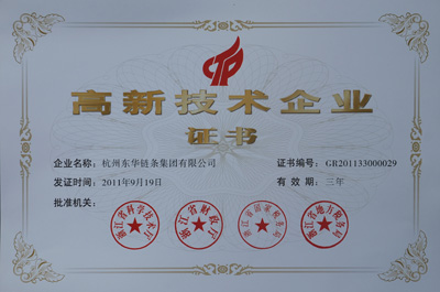 東華集團(tuán)與下屬自強(qiáng)公司于2011年9月分兩批先后根據(jù)《高新技術(shù)企業(yè)認(rèn)定管理辦法》和《高新技術(shù)企業(yè)認(rèn)定管理工作指引》有關(guān)規(guī)定,經(jīng)地方認(rèn)定工作辦公室初審和專家評(píng)審等程序,對(duì)企業(yè)的經(jīng)營(yíng)業(yè)績(jī)、科研投入比例、高新產(chǎn)品、研發(fā)組織管理水平、核心自主知識(shí)產(chǎn)權(quán)、科技成果轉(zhuǎn)化能力及科技人員比例、財(cái)務(wù)成長(zhǎng)性等指標(biāo)進(jìn)行了全面、嚴(yán)格的考察,東華集團(tuán)和自強(qiáng)公司各項(xiàng)業(yè)績(jī)指標(biāo)均達(dá)到國(guó)家級(jí)“高新技術(shù)企業(yè)”的要求,順利通過(guò)審核。2012年4月份正式獲得由浙江省科學(xué)技術(shù)廳、浙江省財(cái)政廳、浙江省國(guó)家稅務(wù)局、浙江省地方稅務(wù)局聯(lián)合頒發(fā)的國(guó)家級(jí)“高新技術(shù)企業(yè)”認(rèn)定證書(shū),有效期三年。