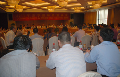 本次會議由銷售公司張秉忠主持,會議就東華集團(tuán)發(fā)展現(xiàn)況、發(fā)展趨勢、管理與生產(chǎn)、全球銷售戰(zhàn)略、定位、品牌建設(shè)、全球制造、全球統(tǒng)一價格、市場協(xié)調(diào)及目前面臨的問題等方面進(jìn)行了深入的分析與探討,在多方面達(dá)成共識。