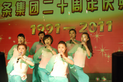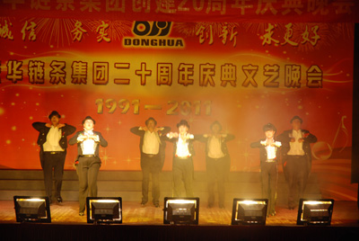 整場(chǎng)慶典晚會(huì)由18個(gè)文藝節(jié)目組成,其中16個(gè)節(jié)目由東華員工自編、自演,這些節(jié)目包括歌舞、小品、雜技、啞劇等等,節(jié)目集思想性、藝術(shù)性和觀賞性為一體。員工們以?xún)?yōu)美的歌聲、輕盈的舞姿、蓬勃的激情,充分展示了東華創(chuàng)建20年來(lái)所發(fā)生的巨大變化和取得的輝煌業(yè)績(jī),栩栩如生地體現(xiàn)了東華兒女團(tuán)結(jié)奮進(jìn)、求真務(wù)實(shí)、開(kāi)拓創(chuàng)新的良好形象和精神風(fēng)貌。宣碧華董事長(zhǎng)的一首清唱《讀毛主席的書(shū)》,把整臺(tái)晚會(huì)推向了高潮,員工們掌聲不斷。