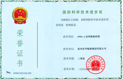 近年來,東華集團研制的FWL-1齒形鏈條產品是首款用于航空器上的鏈條產品,故要求極高的可靠性和壽命。對該產品的開發受到軍方的高度關注,分別經過了軍方的首次開發技術鑒定、首款產品樣件鑒定和量產件產品技術鑒定等三個階段,歷時三年。該航空鏈條的成功開發填補了國內航空領域用鏈條的技術空白,打破了以往該類產品長期依賴進口,被國外技術壟斷的局面,成功取代進口,為中國的國防建設做出了突出貢獻。
