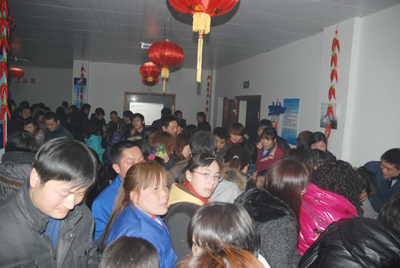 今年的“鬧元宵”游園節(jié)目豐富多彩,既有傳統(tǒng)的猜謎語、釣魚、看字表演活動(dòng),也有投羽毛球、吹乒乓球等新式活動(dòng),這些活動(dòng)全部由各分工會(huì)設(shè)計(jì)、承辦。每個(gè)小節(jié)目都有禮品送,十多個(gè)節(jié)目玩下來,有些員工手上拿滿了禮品,再去抽獎(jiǎng)。今年的獎(jiǎng)品豐富,有MP5、電飯煲、床上用品、吹風(fēng)機(jī)、洗發(fā)水等等?,F(xiàn)場擠滿了游園的員工及家屬,尤其是孩子們臉上堆滿了笑容,大人、孩子都爭先恐后地去搶著玩游戲,好不熱鬧。