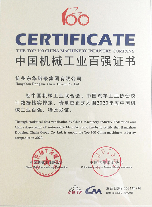 東華鏈條集團連續六年榮登中國機械工業百強榜