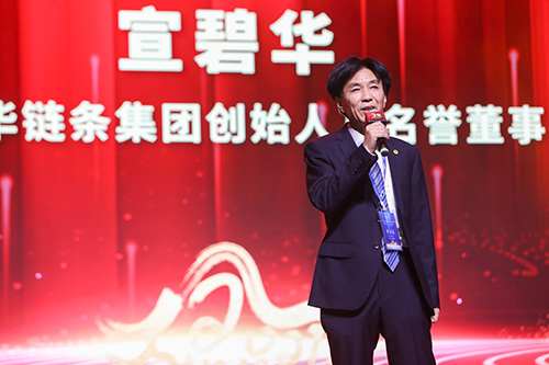 “鏈動(dòng)世界”的開(kāi)場(chǎng)舞后,集團(tuán)創(chuàng)始人、名譽(yù)董事長(zhǎng)宣碧華致辭。他說(shuō),東華三十年來(lái)從小做到大,產(chǎn)品從少做到多,從中國(guó)做到全球,從專(zhuān)注做到專(zhuān)業(yè),從耐心做成迷戀。三十年來(lái)得到員工的擁護(hù),用戶(hù)的認(rèn)可,同行的尊重。三十年中,我們穩(wěn)健經(jīng)營(yíng),專(zhuān)注制造業(yè),為了預(yù)防風(fēng)險(xiǎn),東華三十年中消化了冷落,扛住了壓力,遵守誠(chéng)信,擔(dān)當(dāng)責(zé)任,創(chuàng)造價(jià)值。常言道十年磨一劍。東華三十年磨三把劍,誠(chéng)信、責(zé)任、價(jià)值。今天東華還在路上,還要繼續(xù)擔(dān)當(dāng)下去。感謝各位多年來(lái)對(duì)東華的支持,也感謝今天沒(méi)有來(lái)參加這次慶典大會(huì)的東華員工以及上下游產(chǎn)業(yè)鏈的朋友,祝大家身體健康、事業(yè)有成、家庭幸福。