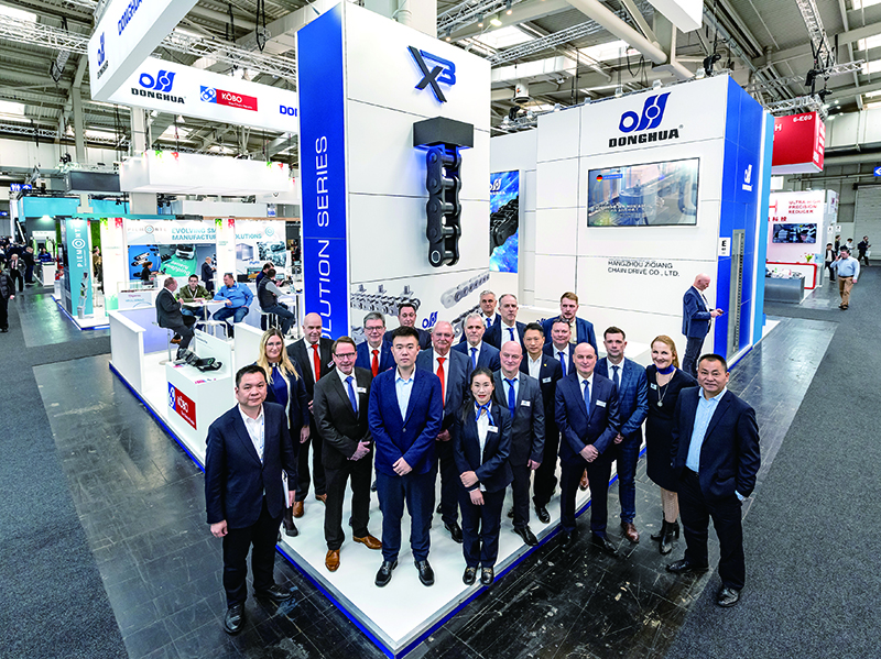 董事長宣成一行第一站參加了2023?德國漢諾威工業(yè)博覽會,這是全球暴發(fā)疫情以來首次線下正式展會。由公司杭州總部攜手多家海外子公司以積極進取的姿態(tài)參加展會。展品包含各類精品鏈條、鏈輪,覆蓋18大行業(yè)、60個細分行業(yè)應用的各類高端鏈條產品。展示東華鏈條集團高質量發(fā)展形象,不斷提升東華自主品牌的影響力。