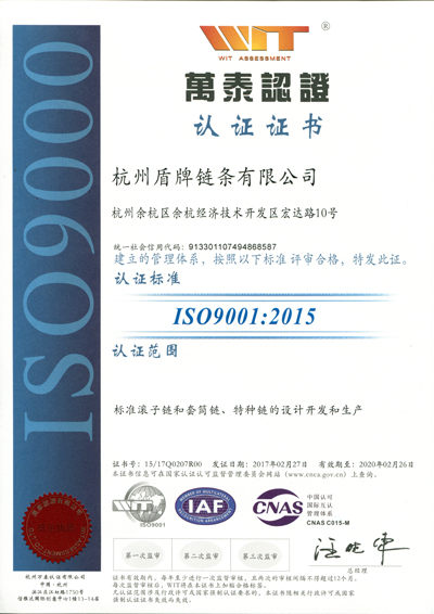 2015版本質量、環(huán)境管理體系認證為當前國際標準最新版認證。盾牌公司順利通過認證,代表著公司在標準滾子鏈和套筒鏈、特種鏈的設計開發(fā)和生產及其所涉及的環(huán)境管理在管理體系上走在了同行的前列,為進一步提升客戶服務、樹立品牌形象提供了更加有力的支撐。