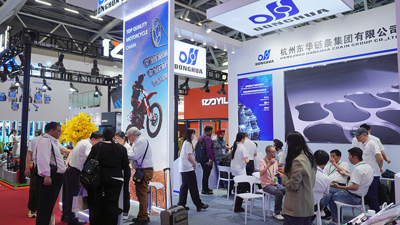 廣交會上,東華鏈條集團重點主推戰(zhàn)略級新品“X3系列高端滾子鏈條”,展現(xiàn)精密制造硬實力;再推傳統(tǒng)優(yōu)勢領(lǐng)域的“農(nóng)機鏈條、扶梯鏈條、物流輸送鏈條、不銹鋼食品鏈、提升設(shè)備鏈”等;重點展出了“高端摩托車鏈”,響應(yīng)公司“摩鏈再出發(fā)”發(fā)展新戰(zhàn)略。其中,“叉車用高強度板式鏈”采用精準(zhǔn)工藝控制,抗拉強度提升60%以上,適配1噸至50噸級叉車嚴苛工況,現(xiàn)已批量配套全球頭部叉車品牌;“堆高機專用鏈條”?通過優(yōu)化工藝設(shè)計,實現(xiàn)疲勞壽命提升1倍以上,滿足港口設(shè)備對高疲勞、高強度及穩(wěn)定性的需求?;針對礦山、港口等場景開發(fā)的“重載型鏈條”?,單鏈節(jié)承重可達3000kg,已成功應(yīng)用于“一帶一路”沿線大型基建項目?。
