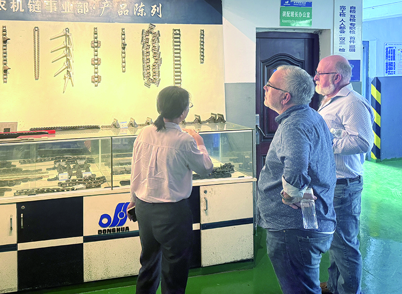 隨后,客戶參觀了公司展廳。通過豐富的產品實物、詳實的介紹及多媒體演示,客戶全面了解了東華農機鏈的發展歷程、技術研發實力、全系列產品矩陣及在全球市場的應用成果。客戶對東華農機鏈在鏈條領域,尤其在高強度、高耐磨性銷合鏈產品方面的持續創新與取得的成效表示贊賞。