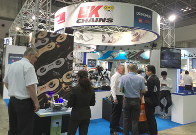 本次展會(huì),東華鏈條集團(tuán)積累了前幾次參展的經(jīng)驗(yàn),不僅展出了各種常規(guī)標(biāo)準(zhǔn)鏈,還分別展出了三家公司的優(yōu)勢(shì)產(chǎn)品,如:東華分動(dòng)箱鏈條、日本EK公司最新研發(fā)的3D摩鏈、德國KOBO公司生產(chǎn)的扶梯鏈、汽車鏈條等。展會(huì)還特別展示了裝有分動(dòng)箱鏈條的分動(dòng)箱裝置及裝有日本EK公司生產(chǎn)的摩鏈的TRIUMPH摩托車,吸引了大量各國參展客戶的觀摩與青睞,這也預(yù)示著東華鏈條正朝著高、精、尖鏈傳動(dòng)方向發(fā)展。東華鏈傳動(dòng)產(chǎn)品的不斷創(chuàng)新發(fā)展,進(jìn)一步展示了東華鏈條作為中國鏈傳動(dòng)行業(yè)領(lǐng)頭羊的形象。